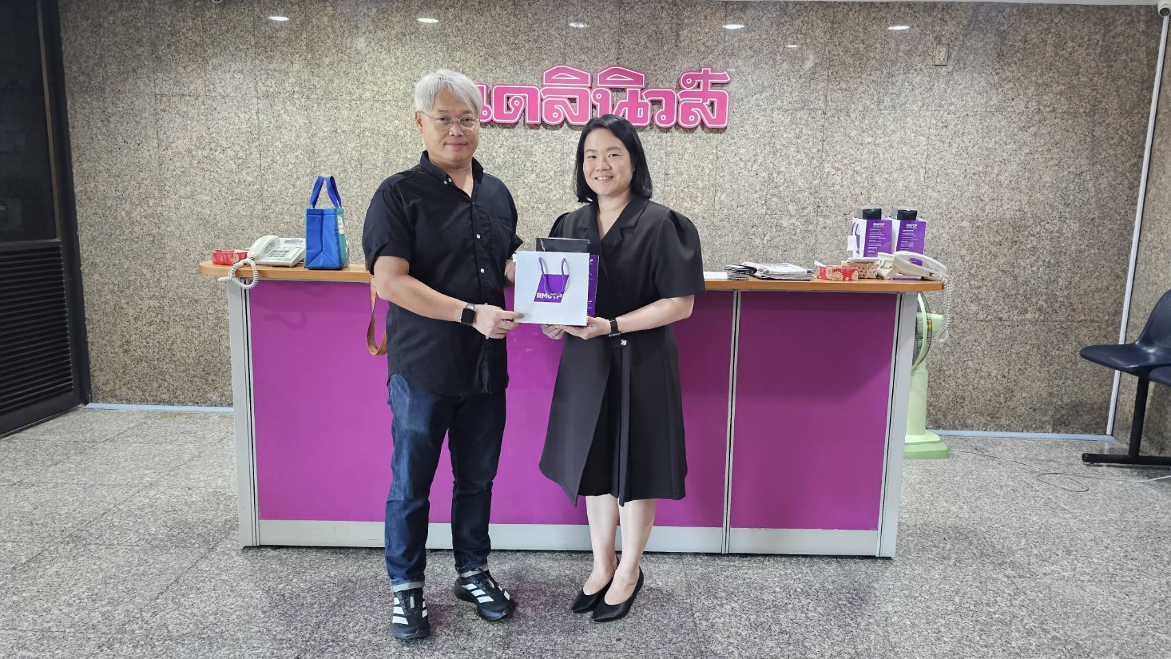 งานสื่อสารองค์การ กองกลาง มหาวิทยาลัยเทคโนโลยีราชมงคลพระนคร นำโดยผศ.ดร.เณริศา ชัยศุภมงคลลาภ ผู้ช่วยอธิการบดีฝ่ายสื่อสารองค์การ นางสาวจุฑามาศ ฉัตรสุริยาวงศ์ หัวหน้างานสื่อสารองค์การ และบุคลากรงานสื่อสารองค์การ ร่วมมอบชุดของขวัญก้านไม้หอม (RMUTP Diffuser) กลิ่น Violet Wisdom : The Scent of Innovation (กลิ่นแห่งปัญญา และนวัตกรรม) ซึ่งเป็นผลงานจาก สาขาวิชาเทคโนโลยีสุขภาพ เครื่องสำอางและการชะลอวัย คณะวิทยาศาสตร์และเทคโนโลยี แทนคำขอบคุณแก่สื่อมวลชน อาทิ สถานีโทรทัศน์ สถานีวิทยุ และสื่อออนไลน์ ที่ให้ความร่วมมือในการนำเสนอข่าวสาร กิจกรรมต่าง ๆ ของมหาวิทยาลัยเป็นอย่างดี และในโอกาสเทศกาลปีใหม่ (ปีมะเมีย) 2569