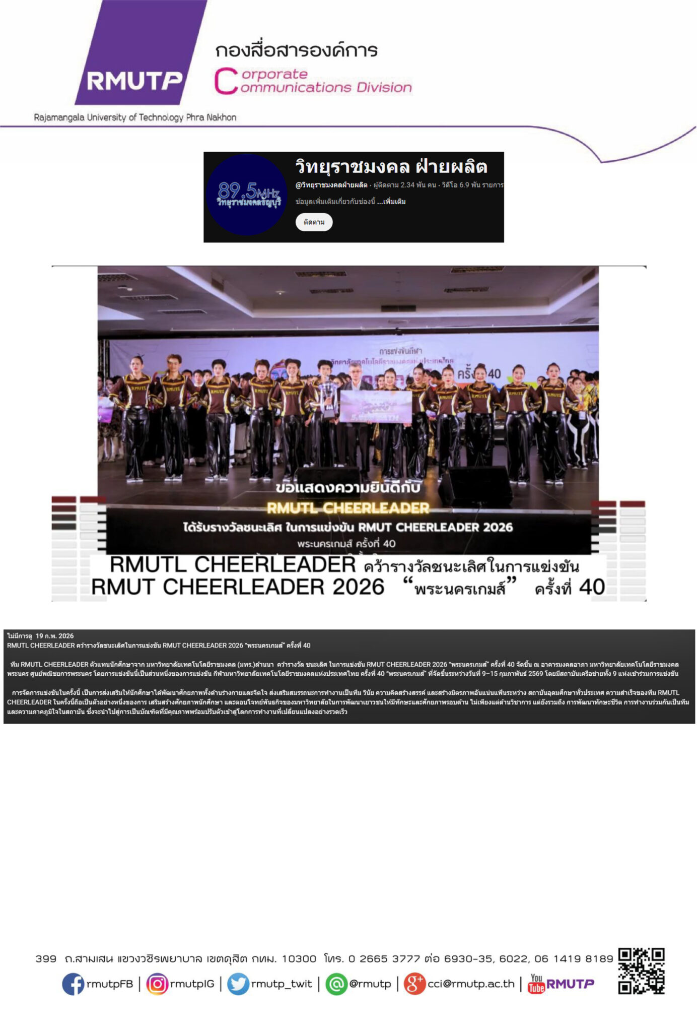 กองสื่อสารองค์การ มหาวิทยาลัยเทคโนโลยีราชมงคลพระนคร