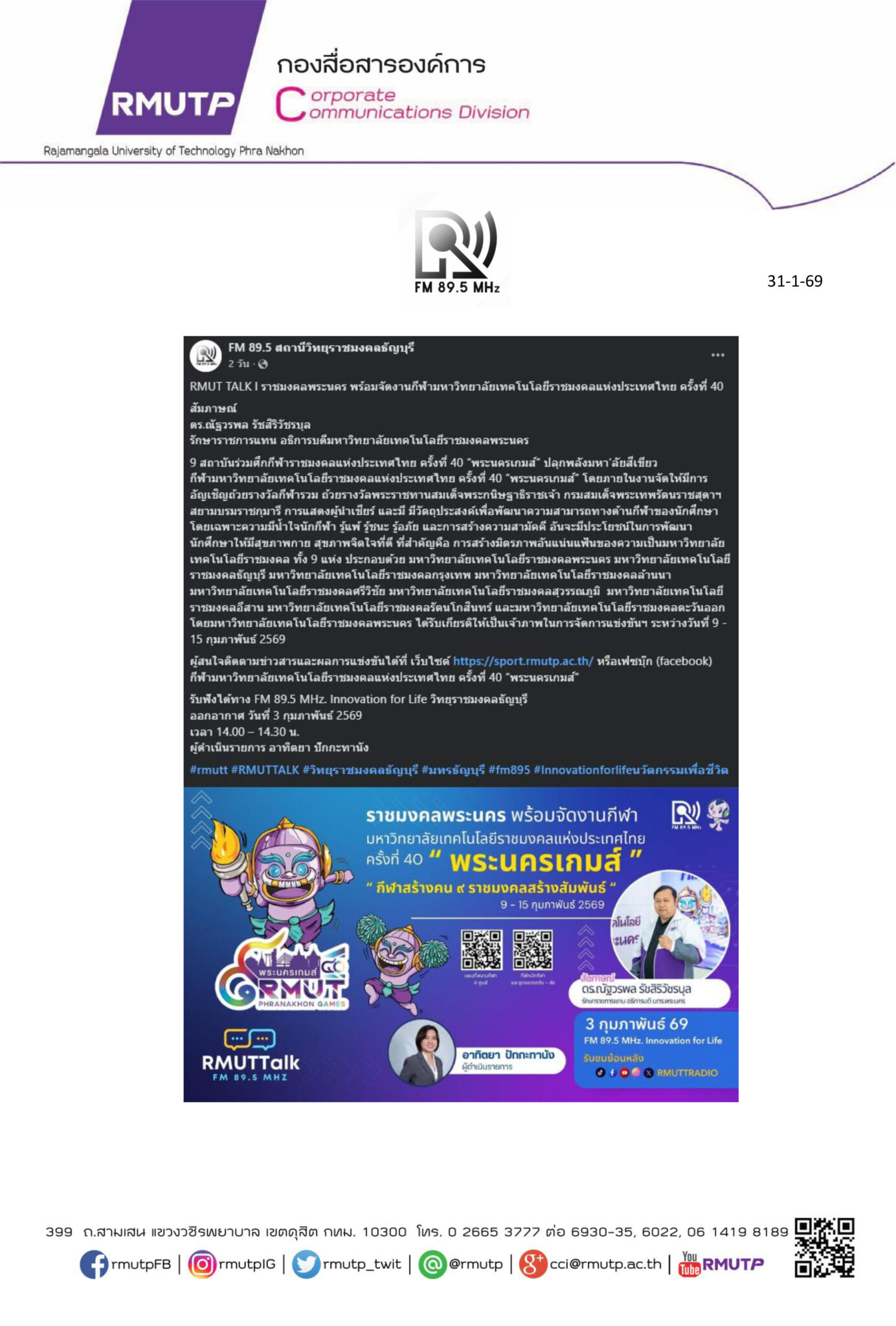 กองสื่อสารองค์การ มหาวิทยาลัยเทคโนโลยีราชมงคลพระนคร
